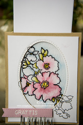 Idag bjuder jag er på en stämpel från Altenew med en magnolia. På den första har jag stämplat och embossat med vitt pulver och sedan målat med Kuretakes Gansai Tambi akvareller. Och på det andra har jag använt Kuretake Clean color brushes för att färglägga. Och här har jag stämplat med en ljusbrun dyna och målat in med en no line teknik. Detta är när man stämpla med en ljusare stämpeldyna och färglägger för då försvinner linjerna.