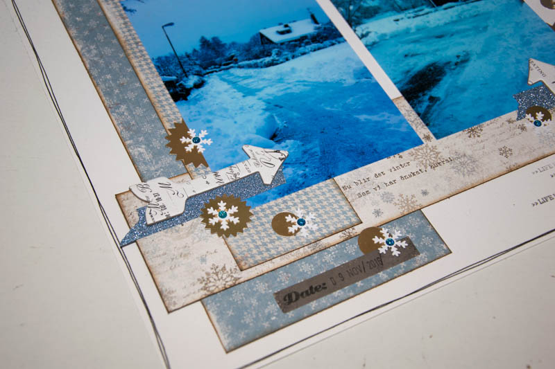 Minns tillbaka på oktober då det var värsta snökaoset här i Stockholm. Sent på kvällen var jag ute och fotade på våran gata när min make var ute och skottade för att kunna komma till jobbet morgonen efter. Det blev inga vidare foton där i mörkret men ändå så tyckte jag att det var mycket värt att scrappa dem så det har jag nu gjort…